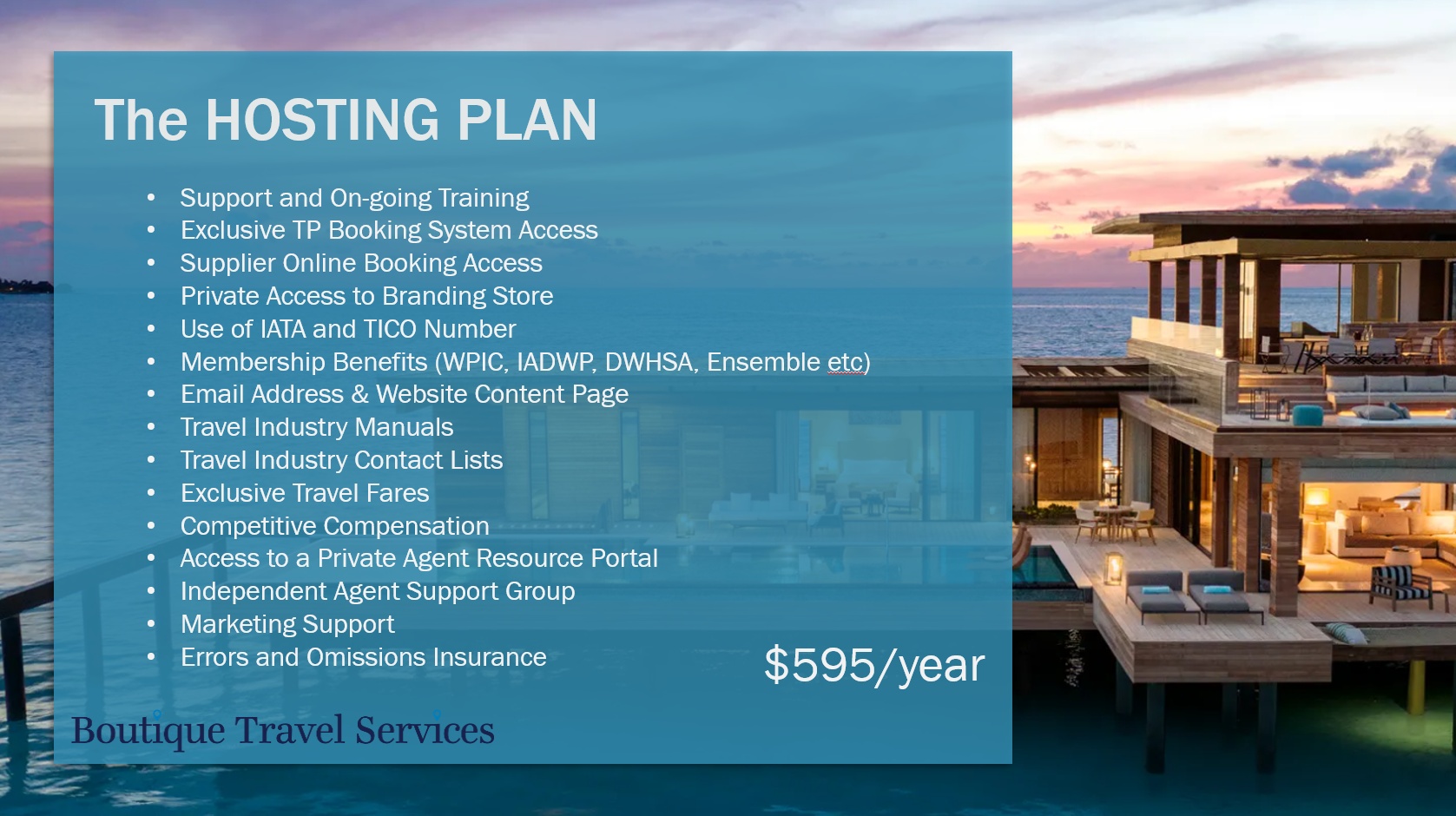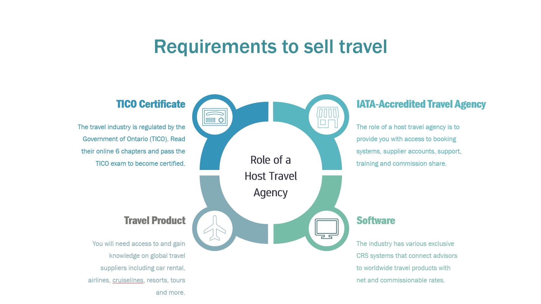 We have designed a comprehensive package to include everything you need to get you started. We offer an award-winning new-to-the-travel-industry 5-week training program that combines weekly live online sessions with an industry expert with over 100 go-at-your-own-pace online classes and resources. You will learn what it takes to set up your own independent travel business, how become a certified, fully-accredited and professional travel advisor, the varying travel products from cruise lines, airlines, tour operators, and destinations, the commission that can be earned, the exclusive agent booking portal software and apps, and how to market your business and sell travel! You also receive 3-months of business coaching, assistance with getting TICO-certified, access to exclusive agent booking portals and invoicing software, full support by a team of industry experts, use of IATA license to earn commission on travel, private travel agent discounts and invitations to FAM trips, access to industry events, inclusion in a community of like-minded travelpreneurs and so much more.