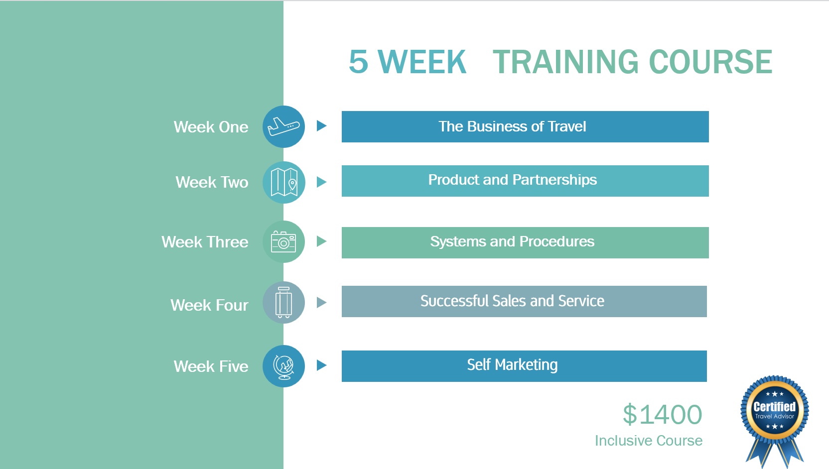 -5-week Certified Travel Agent Training Course ($1400 value)